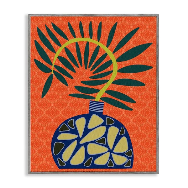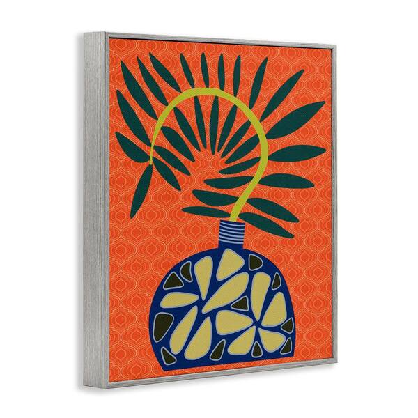 Modern Vase on Orange by Regina Moore Gray Framed Nature Giclee Art Print 14 in. x 11 in.