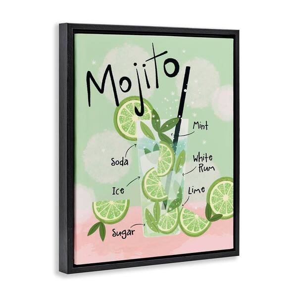 Mojito Cocktail Recipe by Lisa Perry Whitebutton Black Floater Frame Food Graphic Art Print 21 in. x 17 in.