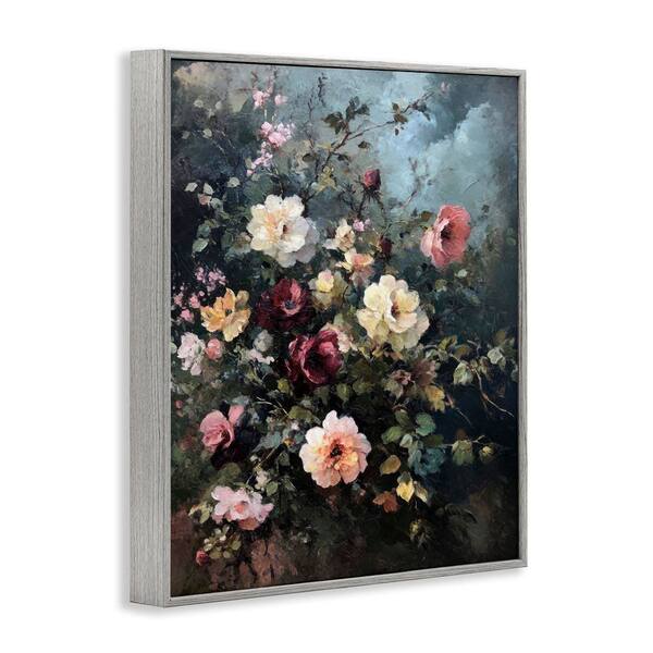 Moody Dark Bouquet by Petal Prints Design Gray Framed Nature Giclee Art Print 30 in. x 24 in.