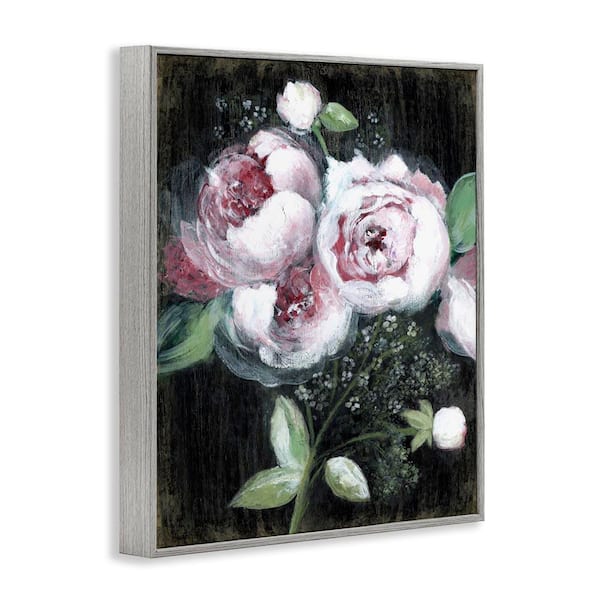 Moody Roses on Black by Janet Tava Gray Framed Nature Giclee Art Print 20 in. x 16 in.