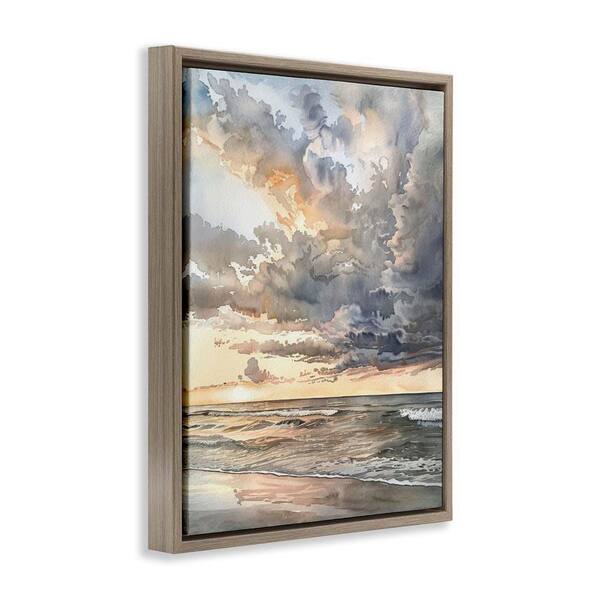 Moody Sea Cloudy View by Petal Prints Design Brown Floater Frame Nature Graphic Art Print 21 in. x 17 in.