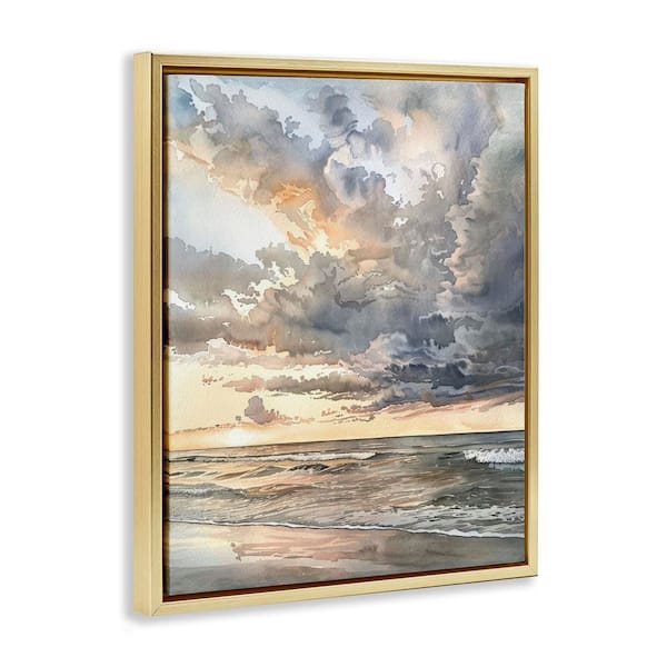Moody Sea Cloudy View by Petal Prints Design Gold Floater Frame Nature Graphic Art Print 31 in. x 25 in.