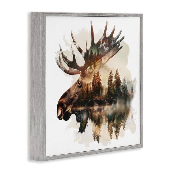Moose Antlers Silhouette by LSR Design Studio Gray Framed Animal Giclee Art Print 24 in. x 24 in.