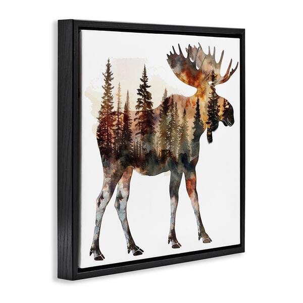 Moose Forest Silhouette by LSR Design Studio Black Floater Frame Animal Graphic Art Print 25 in. x 25 in.