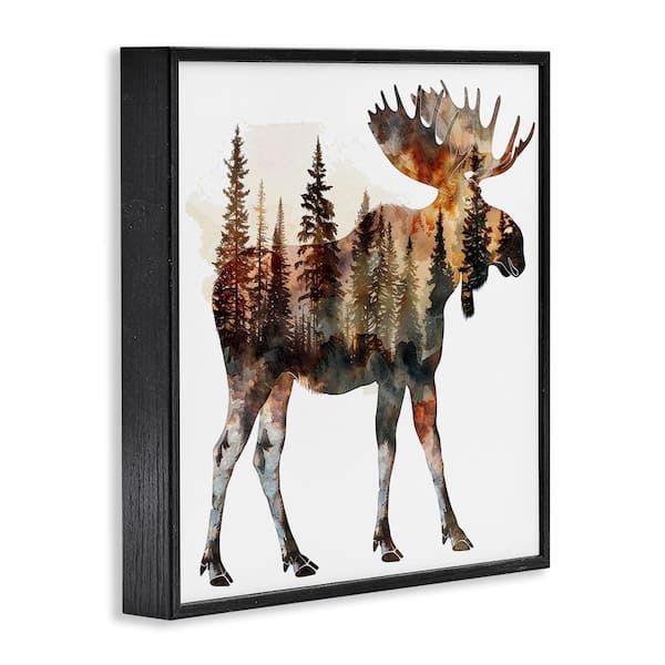 Moose Forest Silhouette by LSR Design Studio Black Framed Animal Giclee Art Print 17 in. x 17 in.