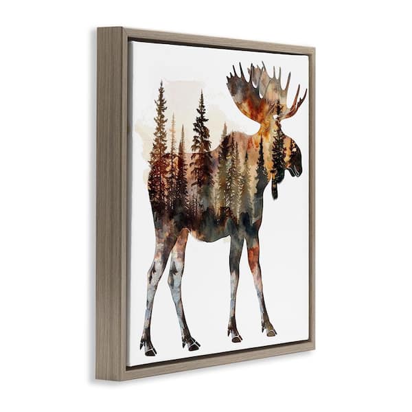 Moose Forest Silhouette by LSR Design Studio Brown Floater Frame Animal Graphic Art Print 25 in. x 25 in.