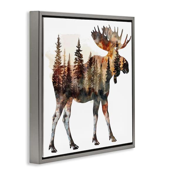 Moose Forest Silhouette by LSR Design Studio Gray Floater Frame Animal Graphic Art Print 25 in. x 25 in.