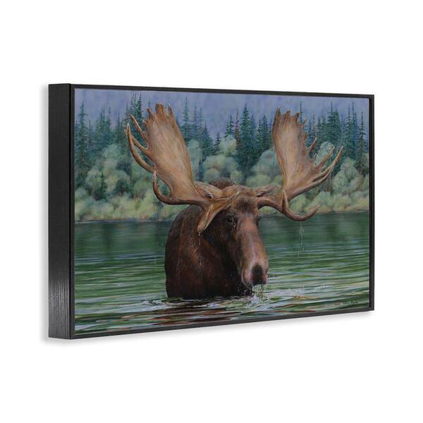 Moose Swimming in Lake by Valerie Rogers Black Framed Animal Giclee Art Print 20 in. x 30 in.
