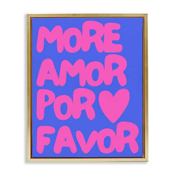 More Amor Blue and Pink by House of Lulu Gold Floater Frame Typography Graphic Art Print 31 in. x 25 in.