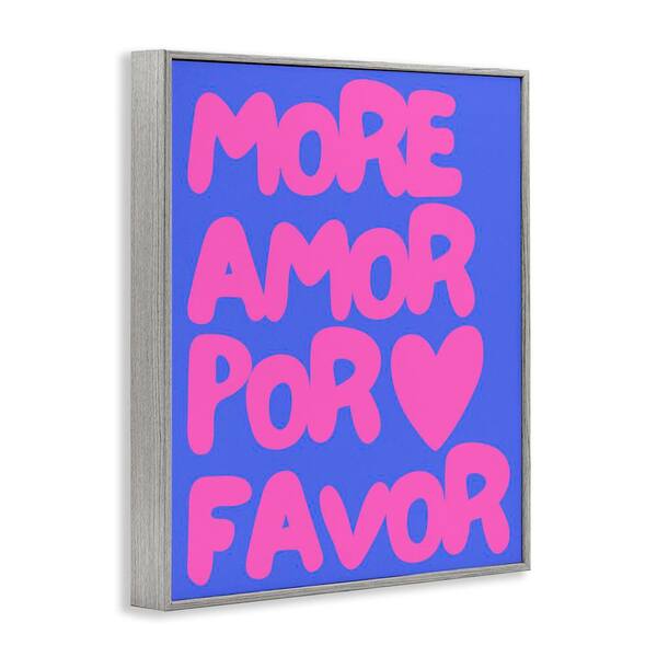 More Amor Blue and Pink by House of Lulu Gray Framed Typography Giclee Art Print 20 in. x 16 in.