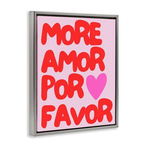 More Amor Phrase by House of Lulu Gray Floater Frame Typography Graphic Art Print 31 in. x 25 in.