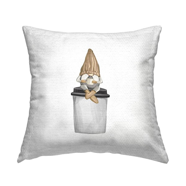Morning Coffee Cup Gnome Beige Square Outdoor Throw Pillow