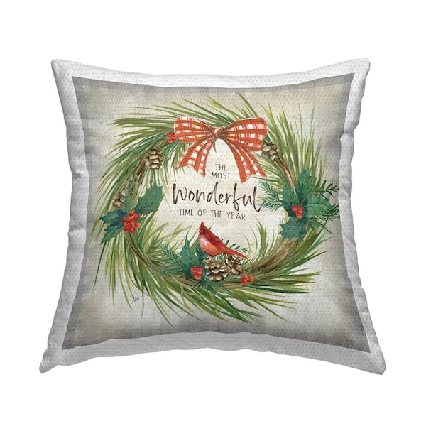 Most Wonderful Time Wreath Green Square Outdoor Throw Pillow
