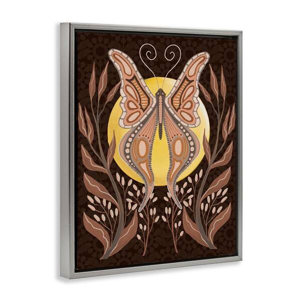 Moth and Moon Botanicals by Regina Moore Gray Floater Frame Animal Graphic Art Print 21 in. x 17 in.