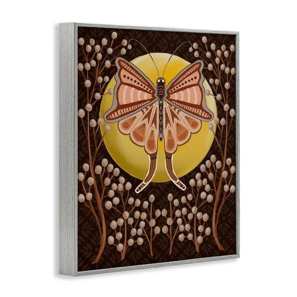 Moth with Willows by Regina Moore Gray Framed Animal Giclee Art Print 30 in. x 24 in.