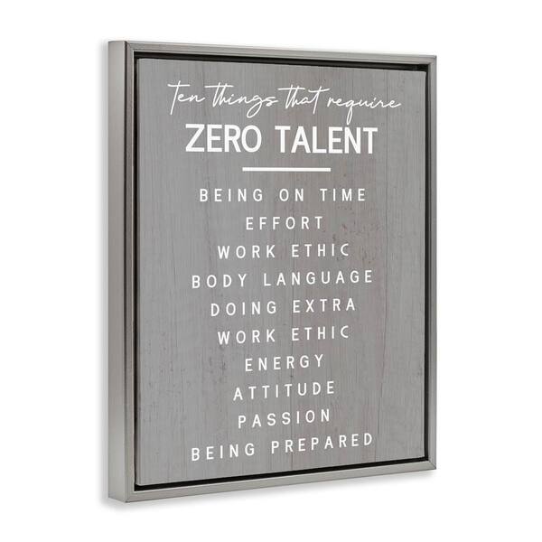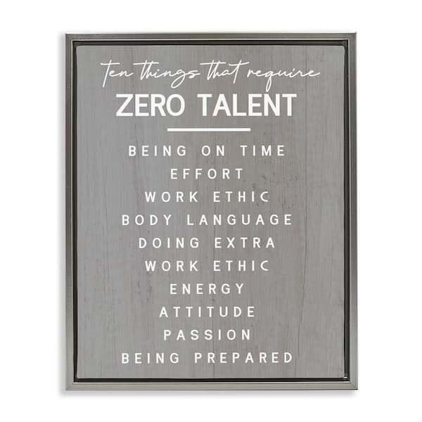 Motivational Zero Talent by Daphne Polselli Gray Floater Frame Typography Graphic Art Print 31 in. x 25 in.