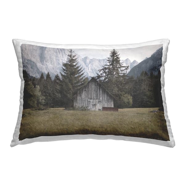 Mountain Forest Cabin Green Print Polyester 14 in. x 20 in. Throw Pillow