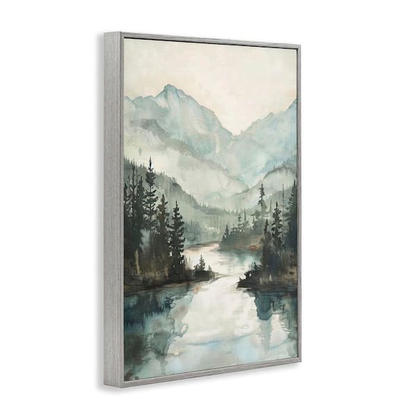 Mountain River View by LSR Design Studio Gray Framed Nature Giclee Art Print 18 in. x 12 in.