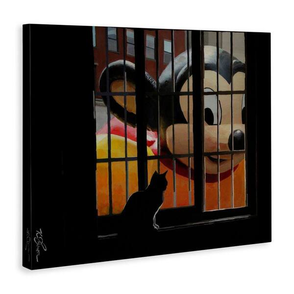 Mouse Character Peering at Cat by Keith Thomson Unframed Animal Graphic Art Print 24 in. x 30 in.