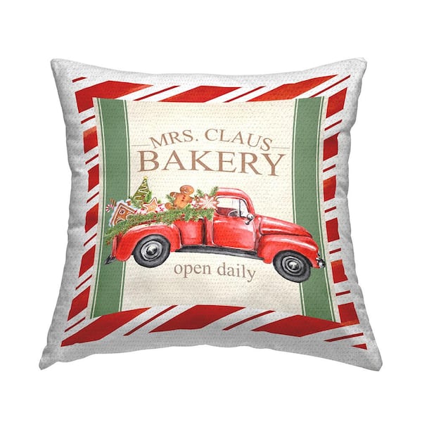Mrs. Claus Bakery Christmas Pattern Red Square Outdoor Throw Pillow