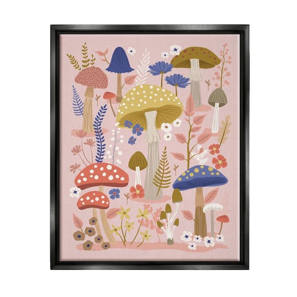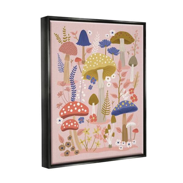 Mushrooms and Botanical Pattern by Lisa Perry Whitebutton Black Floater Frame Graphic Nature Art Print 31 in. x 25 in.