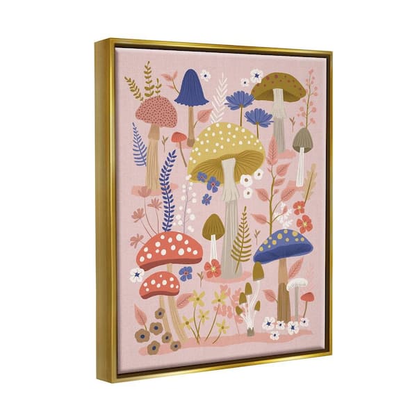 Mushrooms and Botanical Pattern by Lisa Perry Whitebutton Gold Floater Frame Graphic Nature Art Print 31 in. x 25 in.