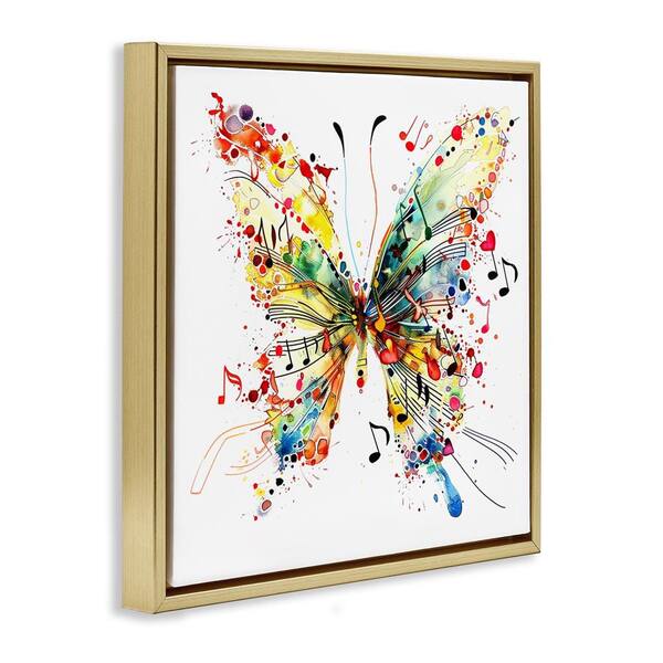 Musical Song Butterfly by LSR Design Studio Gold Floater Frame Animal Graphic Art Print 18 in. x 18 in.