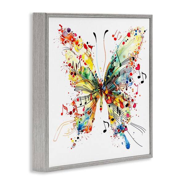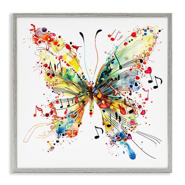 Musical Song Butterfly by LSR Design Studio Gray Framed Animal Giclee Art Print 24 in. x 24 in.