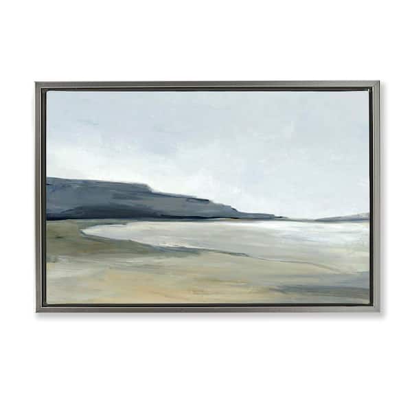 Muted Coastline Cliff by Hannah Dawson Gray Floater Frame Nature Graphic Art Print 21 in. x 31 in.
