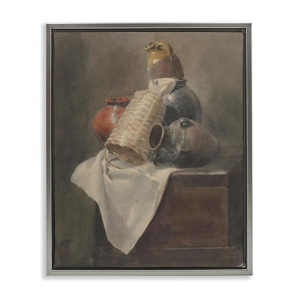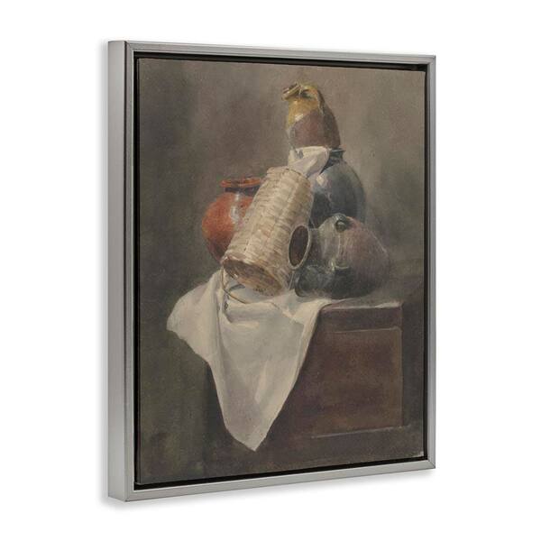 Muted Vases Still Life by Peter Dewint Gray Floater Frame Typography Graphic Art Print 31 in. x 25 in.