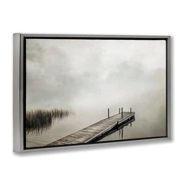Mysterious Foggy Lake Dock by Peter Hawkins Gray Floater Frame Nature Graphic Art Print 17 in. x 25 in.