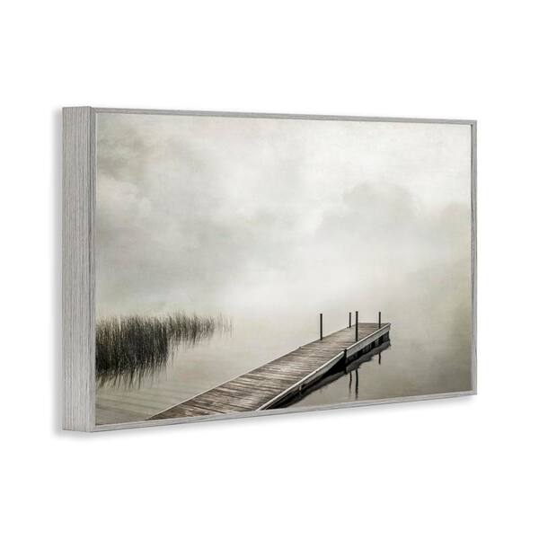 Mysterious Foggy Lake Dock by Peter Hawkins Gray Framed Nature Giclee Art Print 20 in. x 30 in.