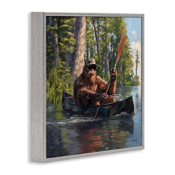 Mythical Monster in Canoe by Jim Baldwin Gray Framed Fantasy Giclee Art Print 12 in. x 12 in.
