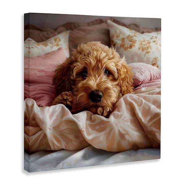 Nap Time Cuddling Pup by Jim Baldwin Unframed Animal Graphic Art Print 30 in. x 30 in.