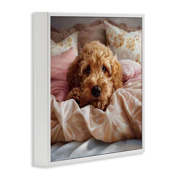 Nap Time Cuddling Pup by Jim Baldwin White Framed Animal Giclee Art Print 17 in. x 17 in.