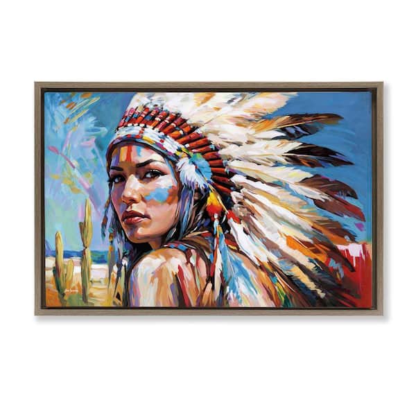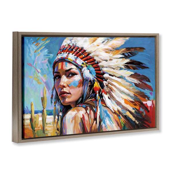 Native American Woman Portrait by Leon Devenice Brown Floater Frame People Graphic Art Print 21 in. x 31 in.