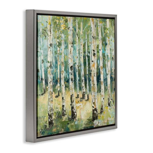 Natural Birch Grove by LSR Design Studio Gray Floater Frame Nature Graphic Art Print 25 in. x 25 in.