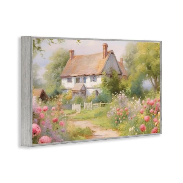 Nature Filled Cottage Garden by Nini Art Gray Framed Coastal Giclee Art Print 12 in. x 18 in.