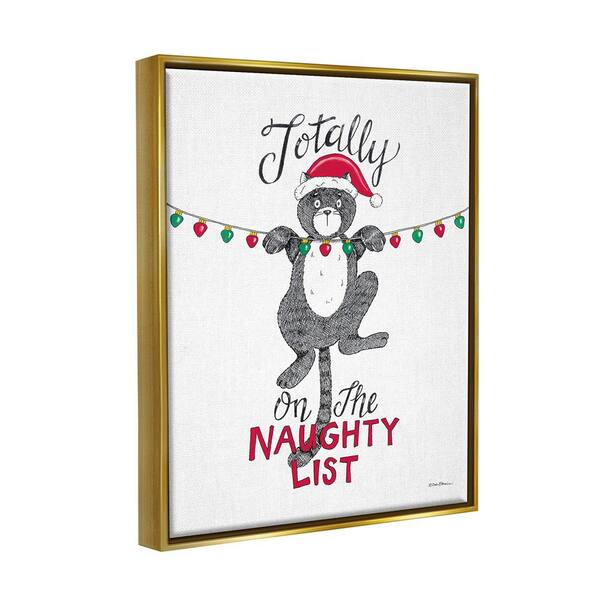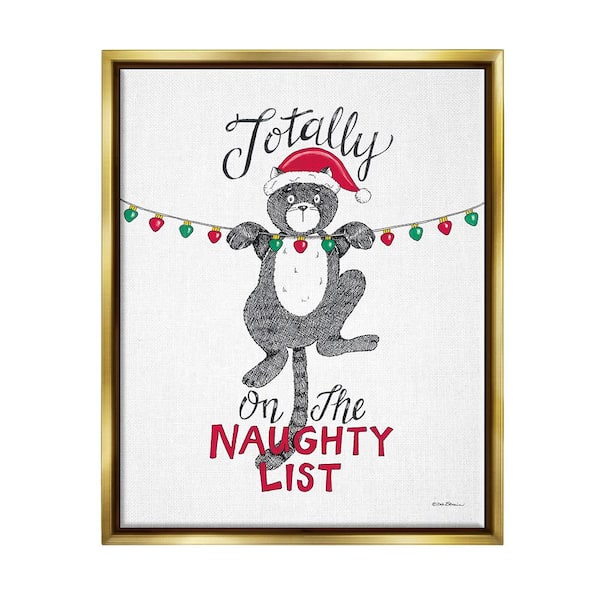 Naughty List Cat Phrase by Deb Strain 1-Piece Floater Frame Graphic Print Animal Poster Art Print 21 in. x 17 in.