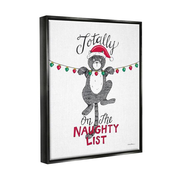 Naughty List Cat Phrase by Deb Strain 1-Piece Floater Frame Graphic Print Animal Poster Art Print 31 in. x 25 in.