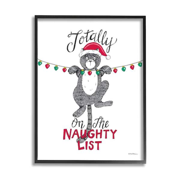 Naughty List Cat Phrase by Deb Strain 1-Piece Framed Graphic Print Animal Poster Art Print 20 in. x 16 in.