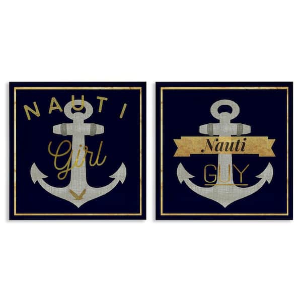 Nauti Girl and Guy Anchors by Graffi tee Studios 2-Pieces Unframed Coastal Graphic Art Print 24 in. x 24 in.