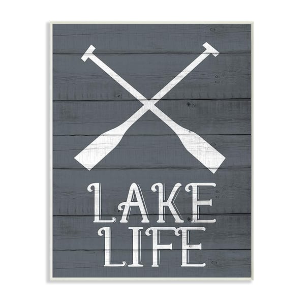 "Nautical Blue Lake Phrase Rustic Boat Oars" by Kimberly Allen Unframed Typography Wood Wall Art Print 13 in. x 19 in.