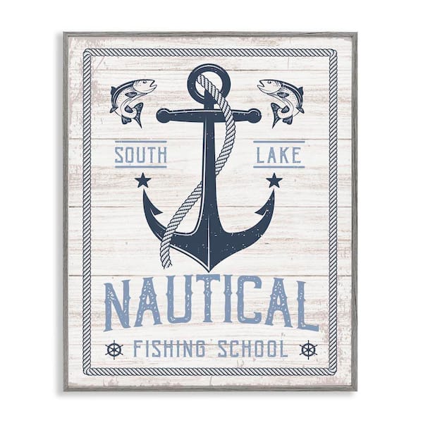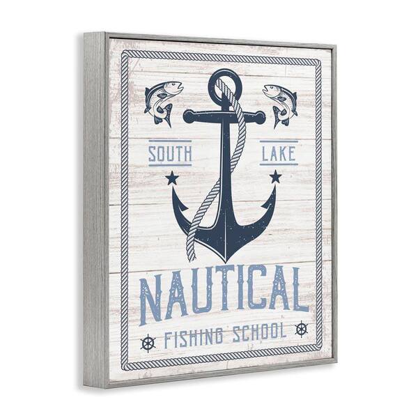 Nautical Fishing School by Angela Nickeas Gray Framed Coastal Giclee Art Print 30 in. x 24 in.