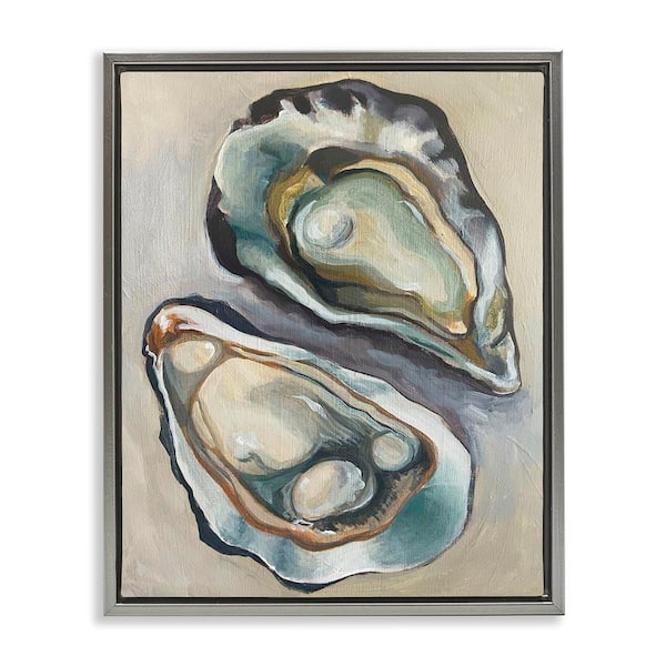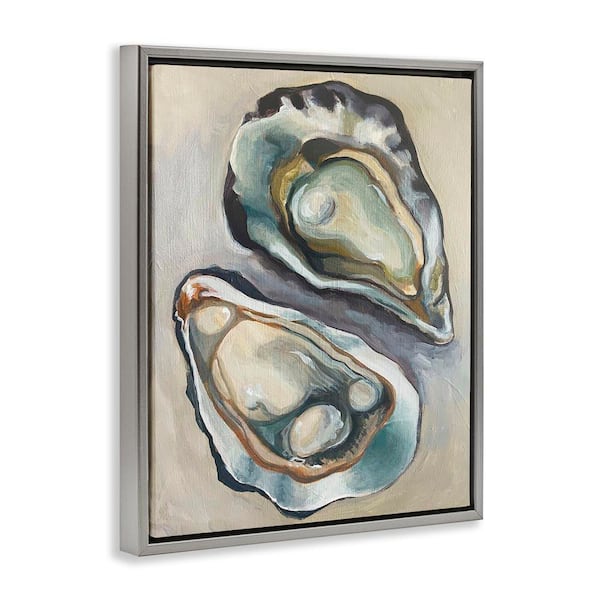 Nautical Oyster Duo by Daphne Polselli Gray Floater Frame Animal Graphic Art Print 31 in. x 25 in.