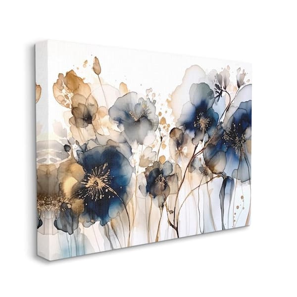 Navy and Gold Abstraction by LSR Design Studio 1 Piece Gallery Wrapped Unframed Nature Graphic Art Print 40 in. x 30 in.