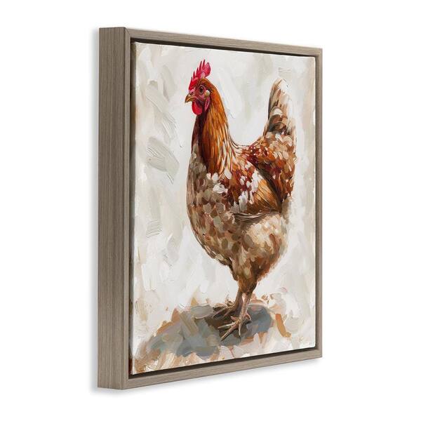 Neutral Chicken on Beige by LSR Design Studio Brown Floater Frame Animal Graphic Art Print 18 in. x 18 in.