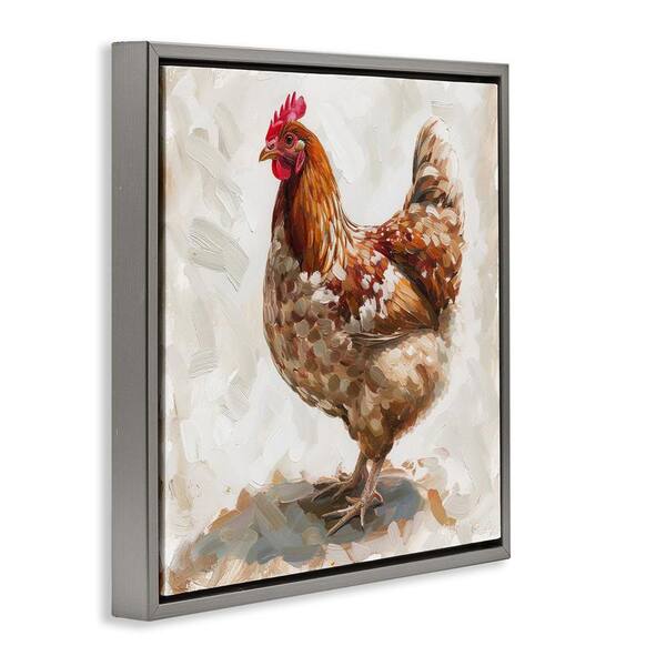 Neutral Chicken on Beige by LSR Design Studio Gray Floater Frame Animal Graphic Art Print 25 in. x 25 in.