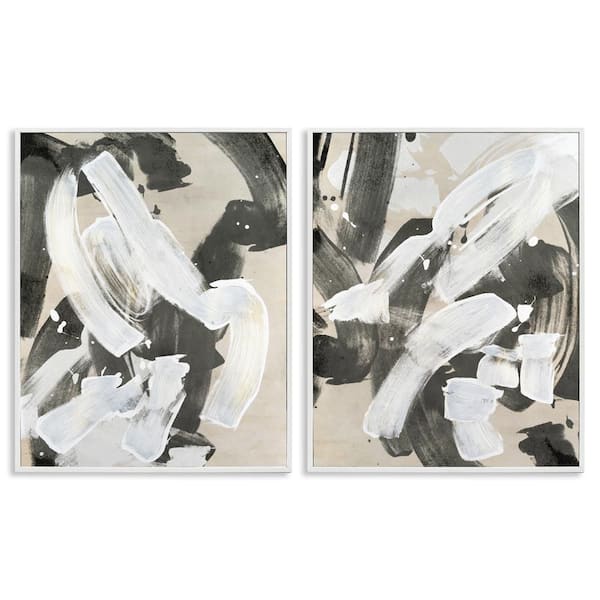 Neutral Paint Streaks by June Erica Vess 2 Pieces White Framed Abstract Giclee Art Print 20 in. x 16 in.