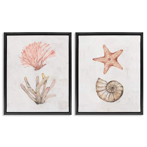 Neutral Pastel Sea Life by Filippo Ioco 2-Pieces Black Floater Frame Coastal Graphic Art Print 21 in. x 17 in.